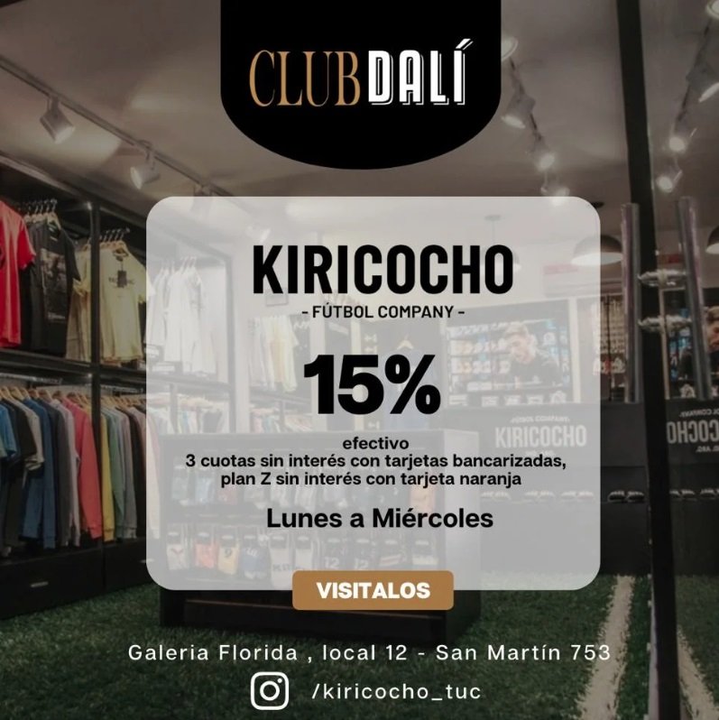 Beneficio válido para todos los socios de club Dali que presenten su numero de id y un documento que acredite identidad. Sujeto a disponibilidad y a lo dispuesto por la legislación vigente. No se superpone con otros beneficios o promociones en los que intervenga otra marca o programa, pudiendo estar sujeto a futuras modificaciones. Deberás informar el uso del beneficio al ingresar al establecimiento y antes de solicitar la factura. Club Dali no tiene ninguna responsabilidad en relación a los productos que se adquieran, siendo el comercio el único responsable por tales cuestiones.