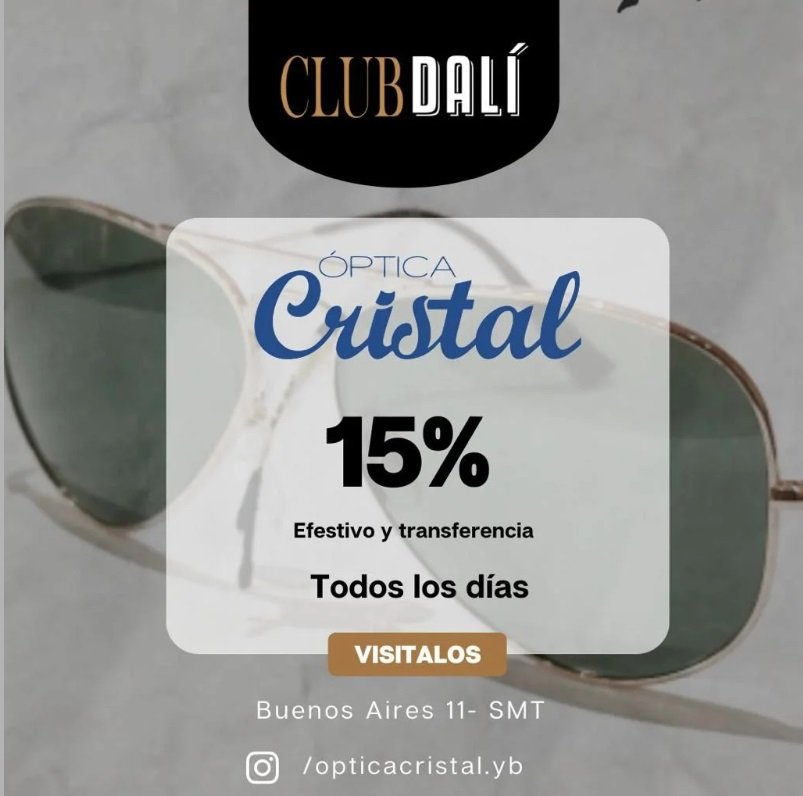 Beneficio válido para todos los socios de club Dali que presenten su numero de id y un documento que acredite identidad. Sujeto a disponibilidad y a lo dispuesto por la legislación vigente. No se superpone con otros beneficios o promociones en los que intervenga otra marca o programa, pudiendo estar sujeto a futuras modificaciones. Deberás informar el uso del beneficio al ingresar al establecimiento y antes de solicitar la factura. Club Dali no tiene ninguna responsabilidad en relación a los productos que se adquieran, siendo el comercio el único responsable por tales cuestiones.