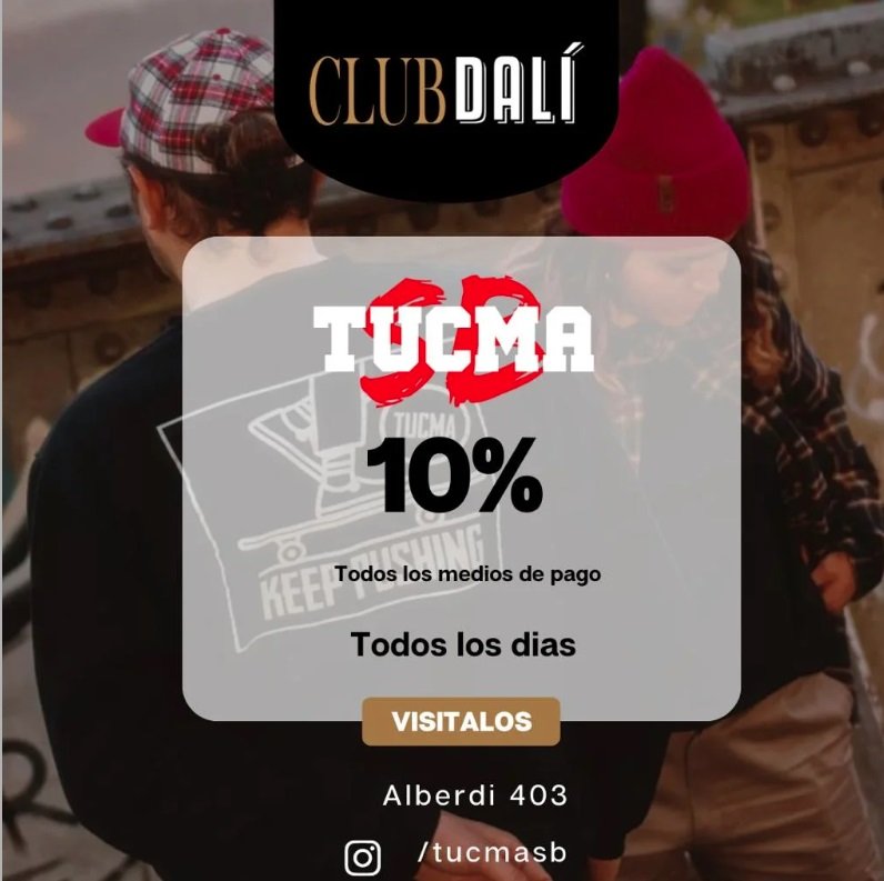 Beneficio válido para todos los socios de club Dali que presenten su numero de id y un documento que acredite identidad. Sujeto a disponibilidad y a lo dispuesto por la legislación vigente. No se superpone con otros beneficios o promociones en los que intervenga otra marca o programa, pudiendo estar sujeto a futuras modificaciones. Deberás informar el uso del beneficio al ingresar al establecimiento y antes de solicitar la factura. Club Dali no tiene ninguna responsabilidad en relación a los productos que se adquieran, siendo el comercio el único responsable por tales cuestiones.